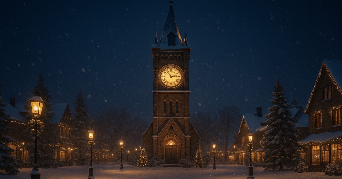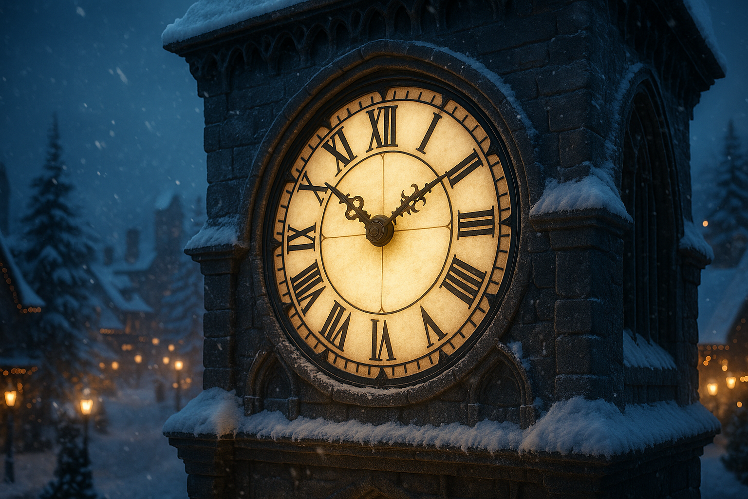 Na ta večer se bo odprl pravljični zimski trg, kjer začne snežiti mehka svetloba. Sredi trga stoji mogočna ura, ki se prebudi samo ob portalu 12–12. Ko se roke ure zasvetijo, se z neba spustijo 12 mističnih manifestacijskih nadangelov, vsak s posebnim poslanstvom.