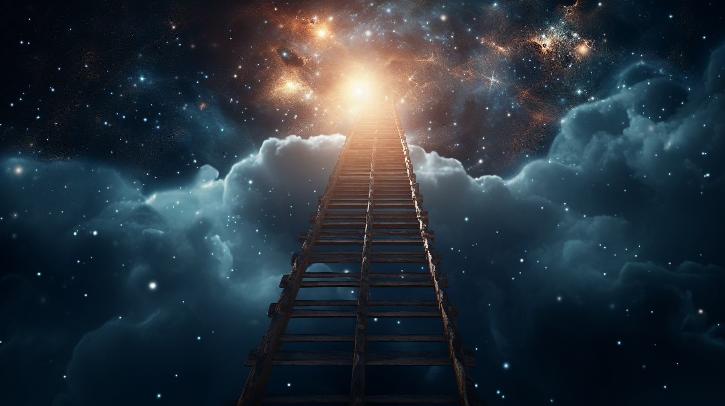 - Na začetku lestve naj ti pomaga mogočna čarodejka Izis: prosi jo, da te z manifestacijsko lestvijo potegne iz tvojega zemeljskega "živega peska" - ta živi pesek predstavljajo tvoje težave, dvomi, strahovi, iluzije ega, zamere do ljudi ali človeštva ... da spustiš vse, kar te vleče navzdol in kar nujno potrebuje svetlobno-magično uravnovešanje ... le kdo bi ti znal bolje pomagati kot Ona, znana tudi kot Božanska Čarovnica, ki je nosila vsestranske darove in je znala pričarati karkoli je želela.