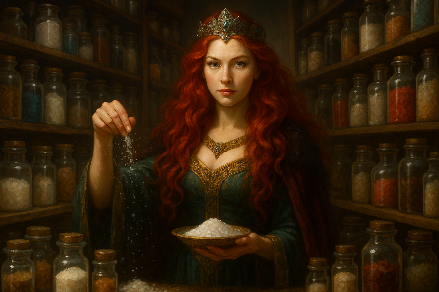Guinevra, kraljica Avalona, je bila varuhinja tega skrivnega znanja. Nosila je krono iz belih kristalov in v svojih dvoranah je hranila številne vrste magičnih soli, s katerimi je čistila energijo ljudi, krajev in namenov. Verjela je, da sol ni snov – je spomin svetlobe, ki se je strdil v materijo, da bi človeku pomagal vrniti se k izviru.