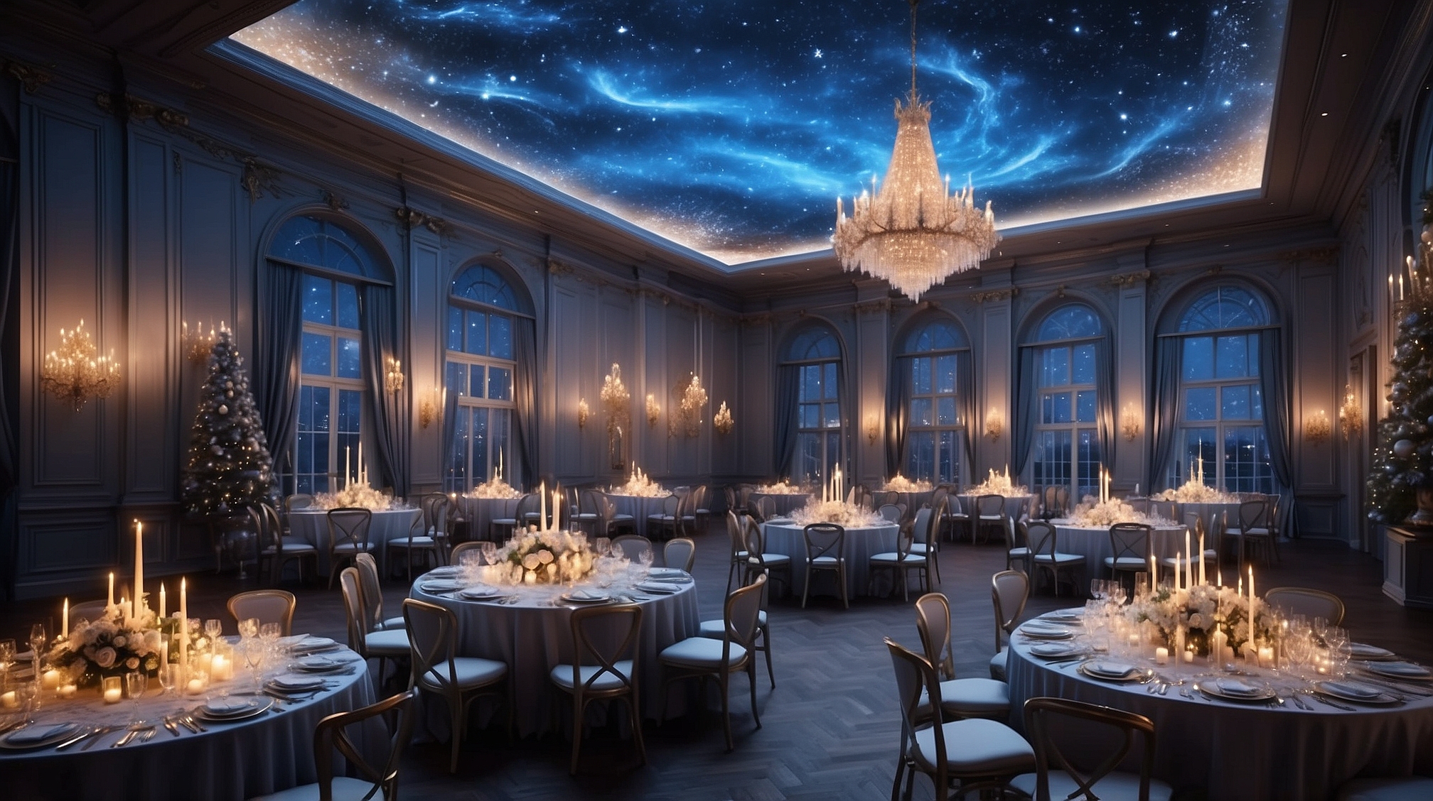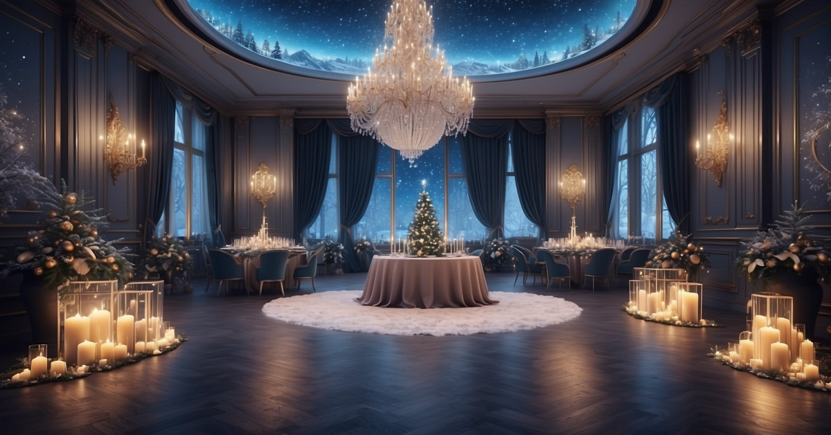 • Dvorana Atlantisa je osupljivo okrašena z eteričnimi lučmi, zlato svetlobo in kristali, ki vibrirajo v frekvenci novega leta.