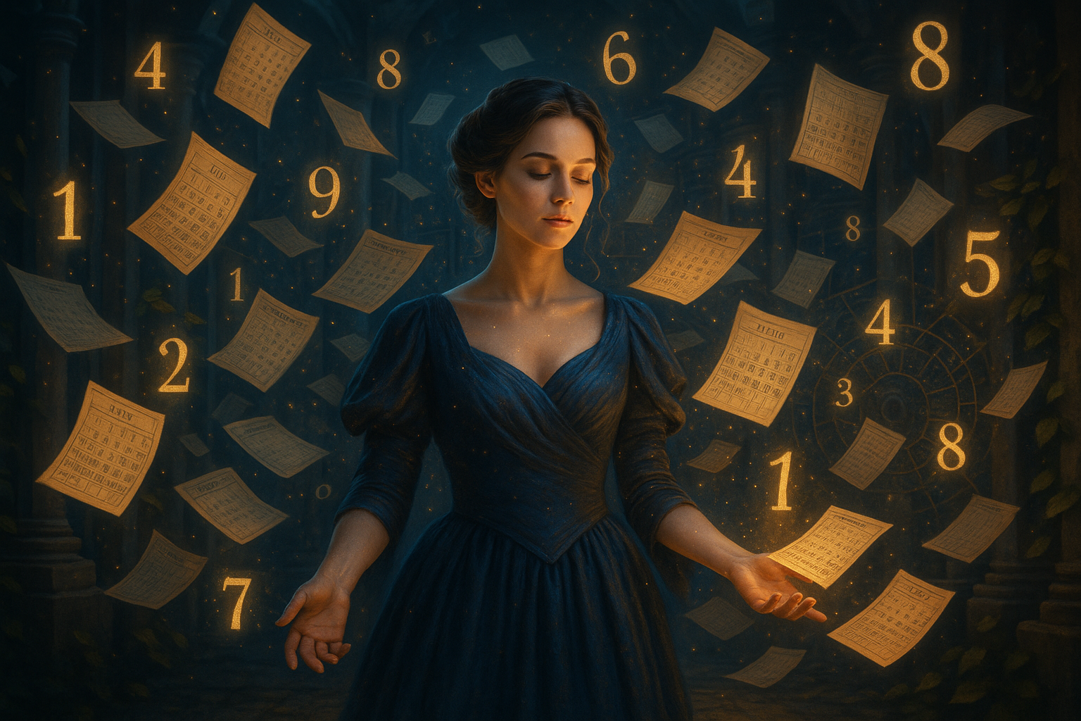 Na prvi stopnji vstopiš v samo srce alkimistične numerologije: časovna okna. To je izračun, ki ti razkrije kdaj se svet dejansko odpre zate. Vsak človek ima v letu nekaj posebnih trenutkov, ko se realnost zmehča. Čas se tam raztegne, vrata se odprejo, manifestacija steče hitreje, tvoji občutki postanejo jasnejši.