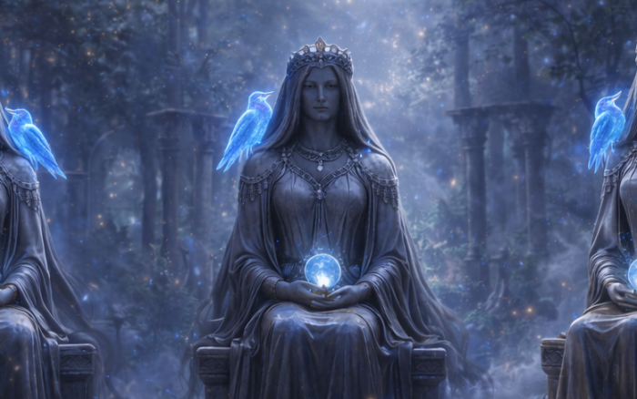 - Tretji mag je veliki čarodej Merlin, ki v sebi nosi zakone manifestacijske magije, a jih izraža skozi modrost starodavnih svetov. Ko oblikuješ svojo željo obilja, vizije in širitve, Merlin dvigne svojo palico, iz katere se razvijejo svetlobni trakovi poti, ki vodijo tja, kjer te čakajo tvoja največja razodetja. Ob njem vidiš, da tvoje sanje niso prevelike – le še niso bile uresničene.