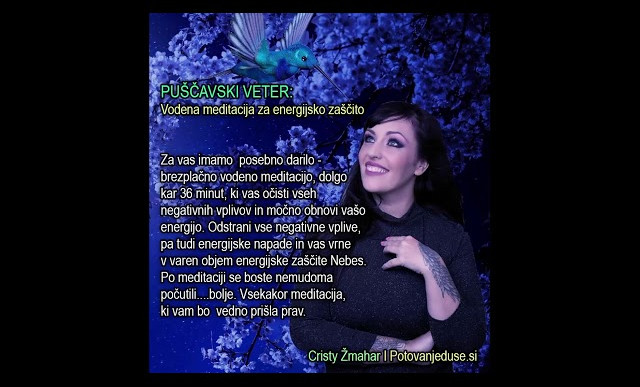 Za vas imamo danes posebno darilo - brezplačno vodeno meditacijo, dolgo kar 36 minut, ki vas očisti vseh negativnih vplivov in močno obnovi vašo energijo. Odstrani vse negativne vplive, pa tudi energijske napade in vas vrne v varen objem zaščite Nebes. Po meditaciji se boste nemudoma počutili....bolje. Vsekakor meditacija, ki vam bo vedno prišla prav. Več vsebin na www.potovanjeduse.si