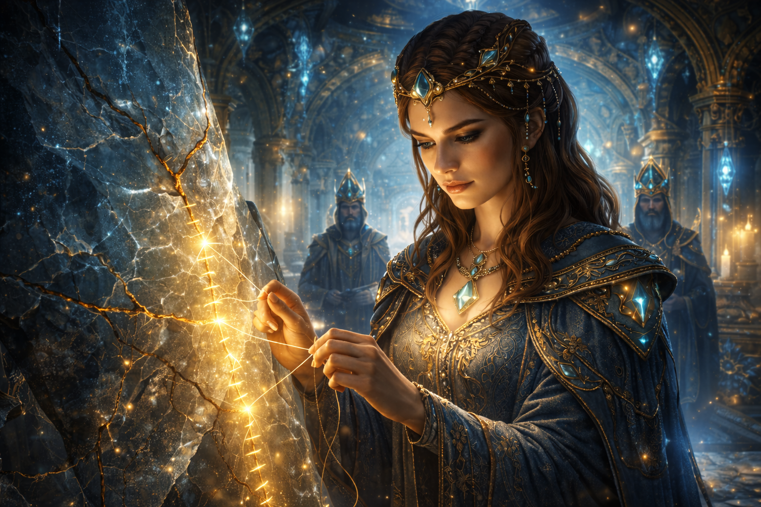 - praksa: šivanje stabilnosti z dihom, dotikom in natančno usmerjeno namero, kot bi zapiral(-a) razpoko v kristalu