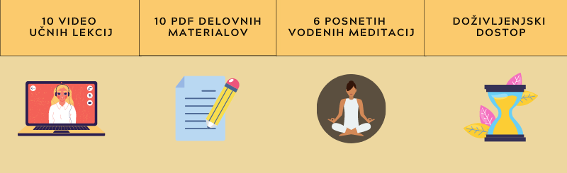 - Za vsako lekcijo prejmeš delovni material, ki ti jo bo pomagal globlje razumeti.
